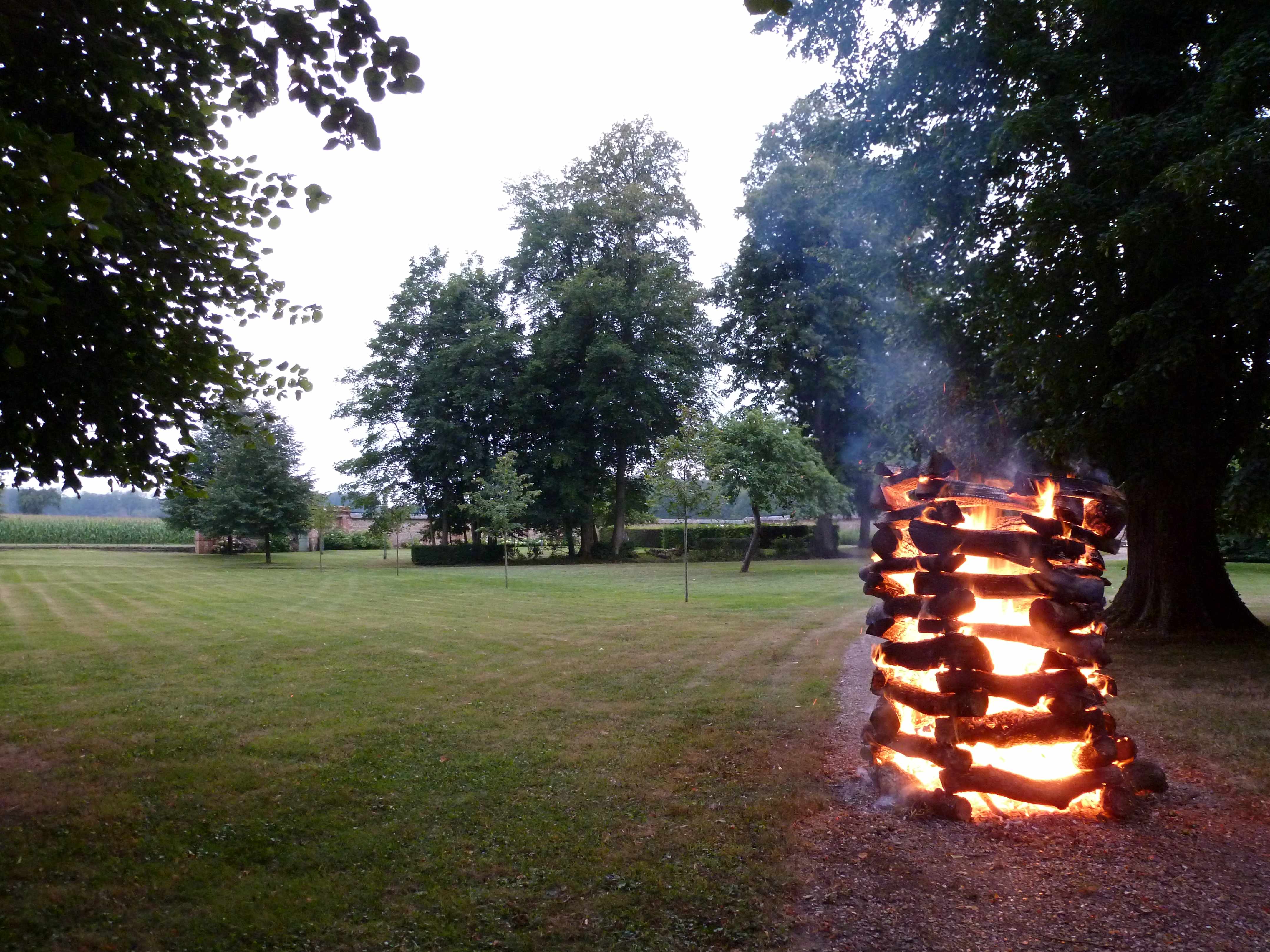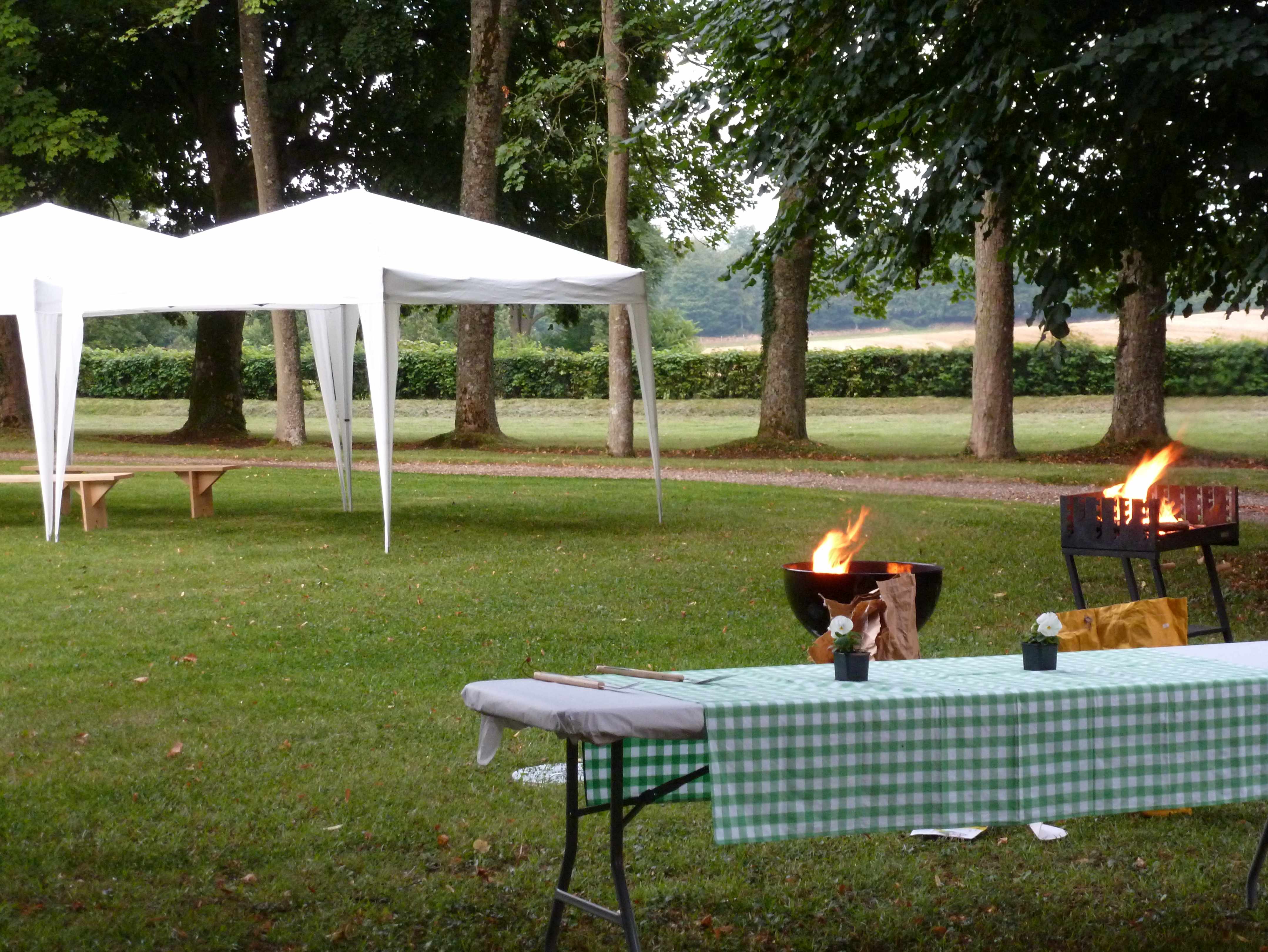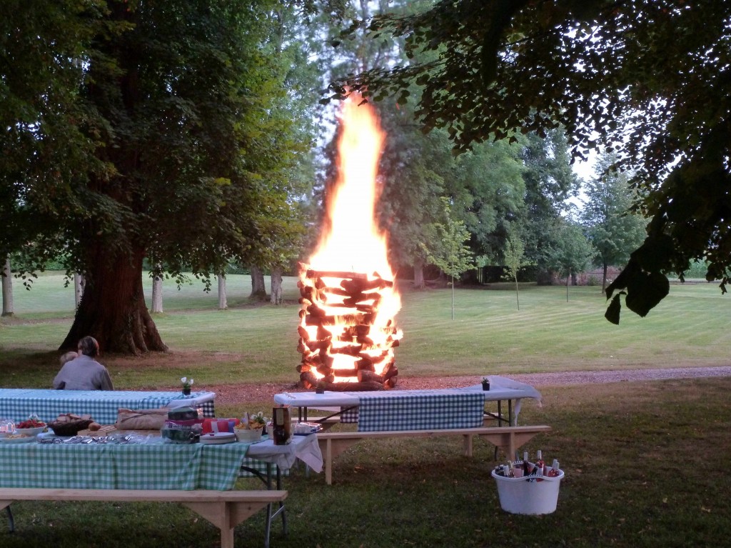 Dîner-barbecue festif et chaleureux près d’un impressionnant feu de camp