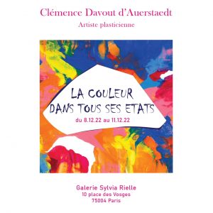 INVITATION – Exposition Personnelle « La Couleur dans tous ses états » du jeudi 8 au dimanche 11 décembre 2022