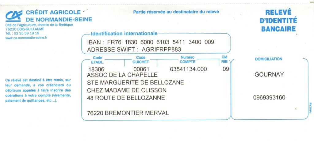 Ps: Si vous réglez par virement, merci de le signaler sur la fiche d’adhésion complétée et signée, à envoyer par courrier ou par mail à Brigitte de Clisson. Merci